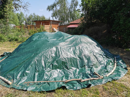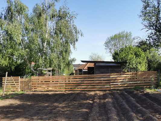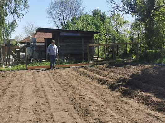 Der Bereich zwischen Folientunnel und Ziegenfreilaufgehege wird mit der kleinen Handfräse umgebrochen und wieder als Gemüsebaufläche genutzt. Als erste Kultur werden Erdäpfel angebaut – und das bedeutet: heuer gibt es erstmalig Heurige Erdäpfel am Heumesserhof!
