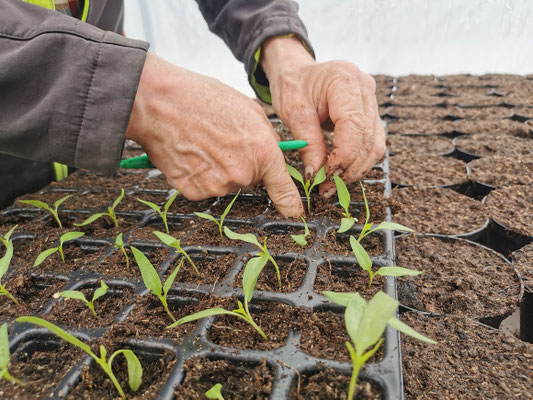 Auch unsere Jungpflanzen von Paprika und Tomaten gedeihen prächtig. Mit jedem Tag wachsen sie kräftiger heran und warten darauf, in ein paar Wochen ins Freiland oder ins Gewächshaus zu ziehen.