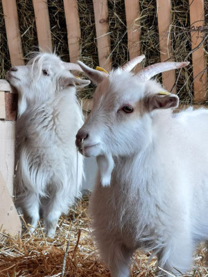 Geboren im Frühling 2024, bringen sie jede Menge Lebensfreude, Charme und Neugier mit. Ihr verspieltes Wesen sorgt für frischen Wind in unserer harmonischen Ziegengemeinschaft – und für strahlende Augen bei jedem Besuch! Kommt vorbei und erlebt unsere Kaschmirziegen hautnah – ein echtes Highlight für Groß und Klein!