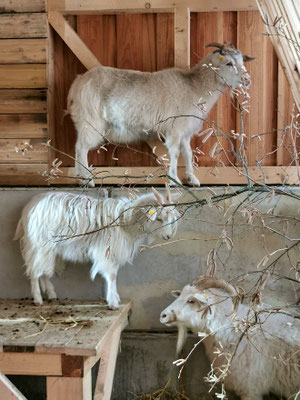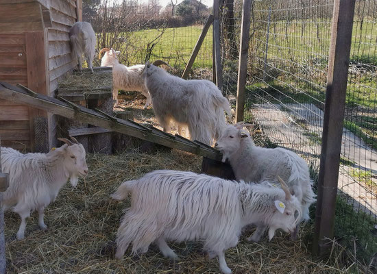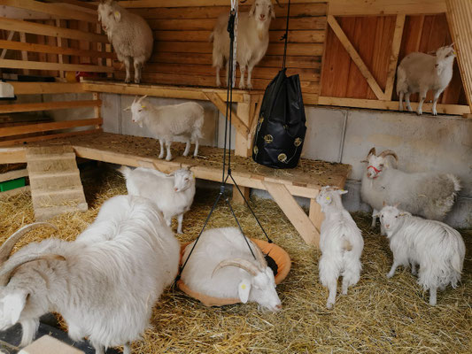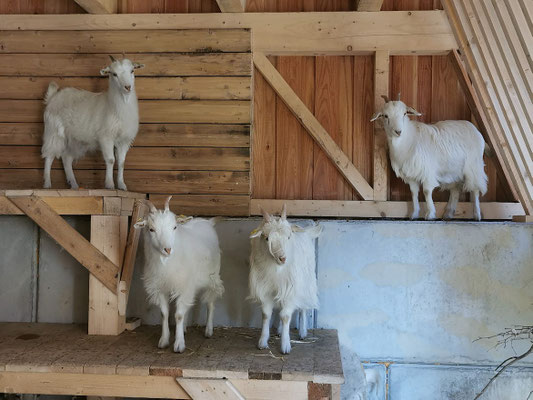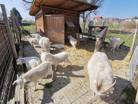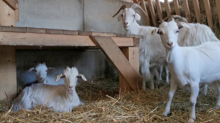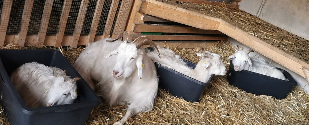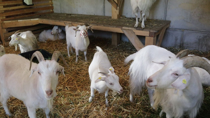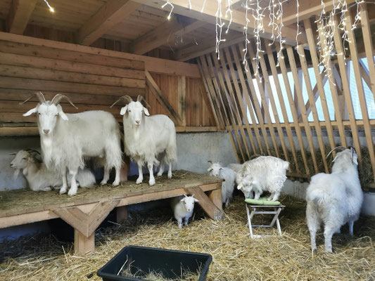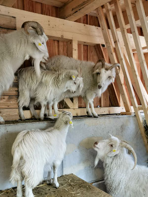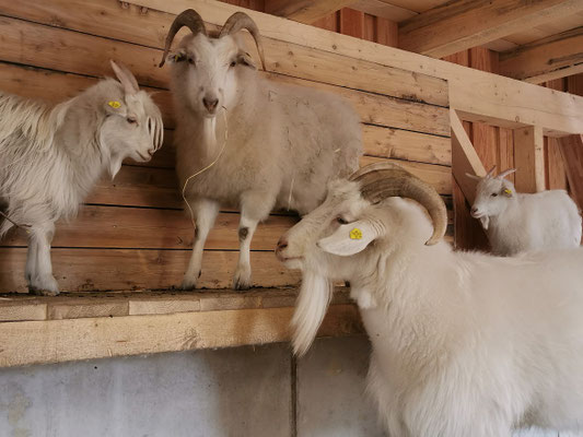 Vor nicht einmal einer Woche ist die neue Kaschmirziegenherde bei uns eingezogen, und in dieser kurzen Zeit hat sich bereits viel bewegt. Unsere 4 Buben haben die Neuen kennen gelernt, und mittlerweile sind alle 9 Kaschmirziegen gemeinsam im neuen Stall untergebracht.