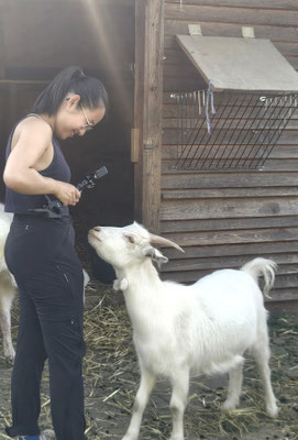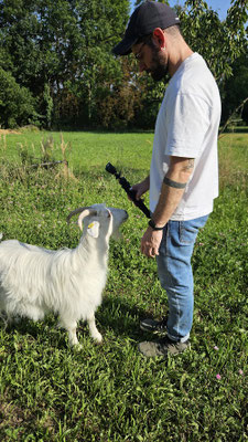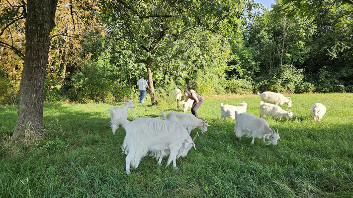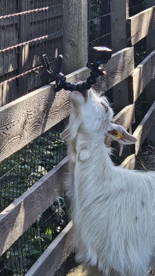 Es ist nun genau ein Monat vergangen, seit die 5 neuen Kaschmirziegen bei uns eingezogen sind. Ich freue mich sehr, dass Ukasha, Maya, Khari, Greta und Muffin sich so toll eingewöhnt haben und bereits eine eingeschworene, harmonische Herde mit meinen Buben Dino, Kasimir, Friedolin und Benjamin bilden. Mittlerweile laufen auch alle auf mich zu, wenn ich den Stall betrete, und lassen sich von mir anfassen – ein tolles Zeichen für ihr Vertrauen! Jetzt kann ich mit der Ausbildung der 4 Mädels und Muffin beginnen. Uns allen steht eine aufregende Zeit bevor – es gibt noch viel zu lernen, für alle von uns, sowohl für die Ziegen als auch für mich!