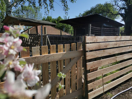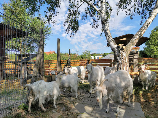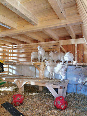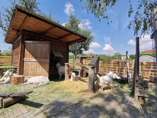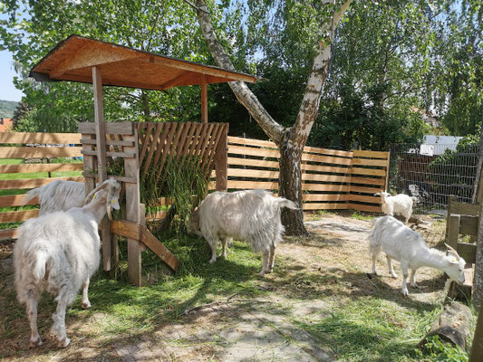 Der ehemalige Stall unserer vier Kaschmirziegenbuben hat nun eine neue Funktion: Er wurde zu einem großzügigen Tagesauslauf für die gesamte Kaschmirziegenherde umgestaltet. Das ursprüngliche Gehege wurde erweitert und für unsere Kaschmirziegen optimal angepasst.