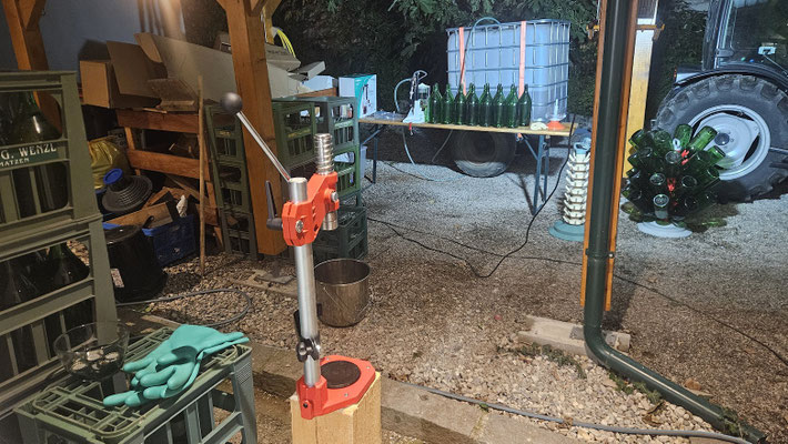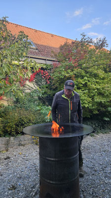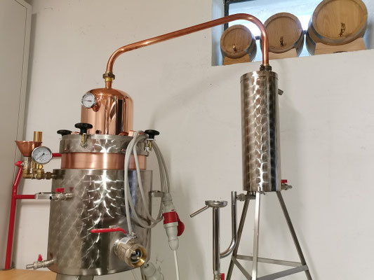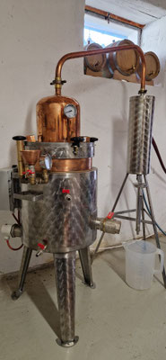 Ein großes Highlight: Er hat sich eine kleine Destille angeschafft! Der alte Kriacherlbaum im Garten trug heuer eine reiche Ernte, und es war nur logisch, die süßen Früchte einzumaischen.