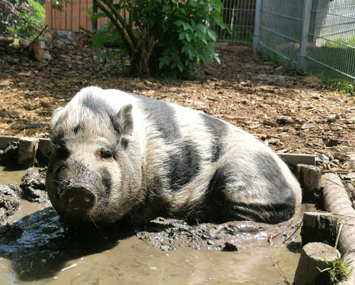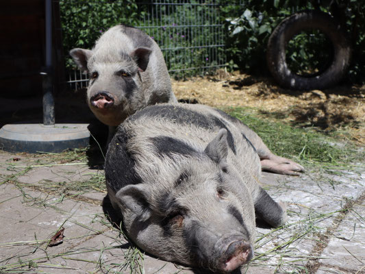 Ich bin wirklich überrascht, wie schnell und problemlos die beiden Gruppen sich angenähert haben. Besonders schön ist, dass die Mädels immer zutraulicher werden. Einige von ihnen begrüßen mich sogar schon, wenn ich in den Stall komme, und lassen sich bereits streicheln.
