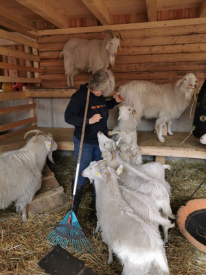 Das lange Warten hat endlich ein Ende – unsere neue, kleine Kaschmirziegenherde ist nun zu Hause und im neuen Stall eingezogen! Nun beginnt eine spannende und lehrreiche Zeit für alle von uns – sowohl für die Ziegen als auch für uns Menschen. Das Ziel ist es, die 4 Mädels (Ukasha, Maya, Khari, Greta) und das kleine Böckchen (Muffin) ebenso wie unsere Buben für die tiergestützte Arbeit auszubilden. Eine aufregende Reise voller Lernmomente und gemeinsamer Erfahrungen liegt vor uns! Wir sind schon sehr gespannt, was diese neue Phase für uns alle bringen wird!